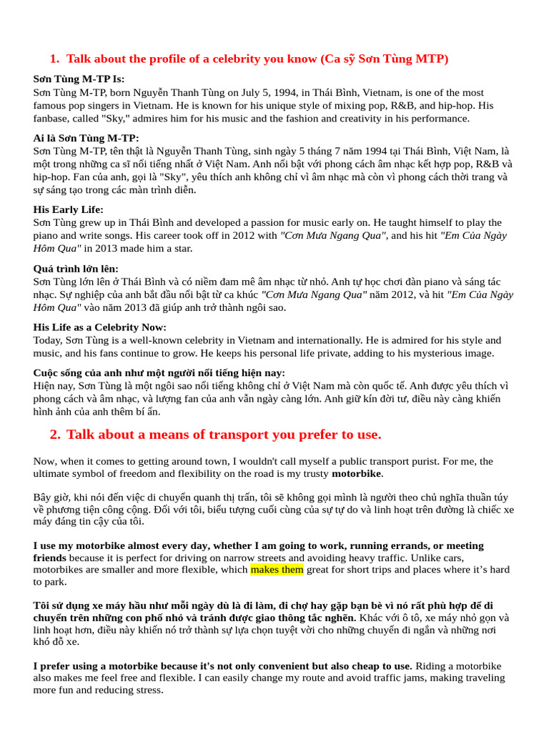 Talk about the profile of a celebrity you know (Ca sỹ Sơn Tùng MTP)