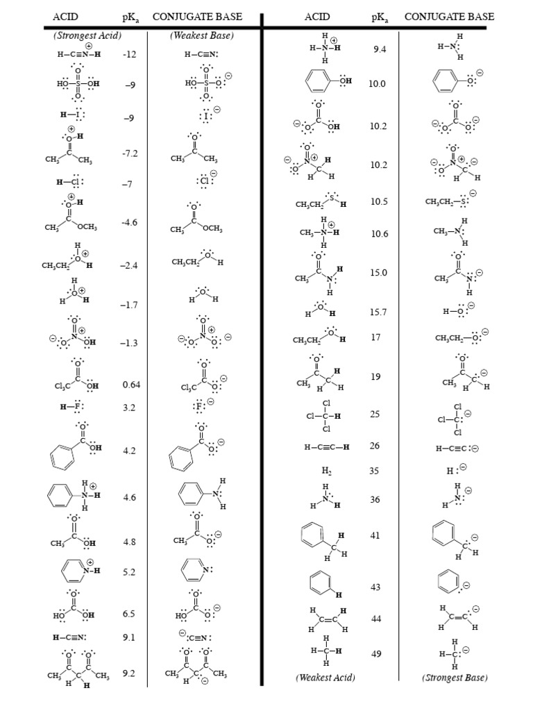 ACID pKa CONJUGATE BASE ACID pKa CONJUGATE BASE