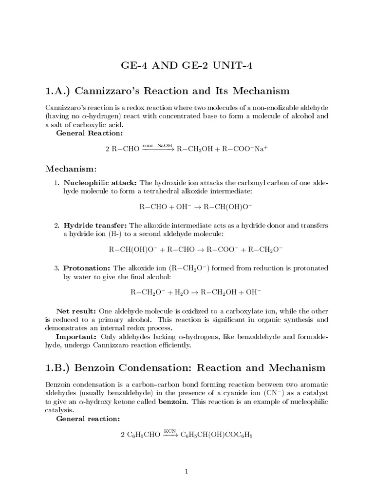 1.A.) Cannizzaro's Reaction and Its Mechanism