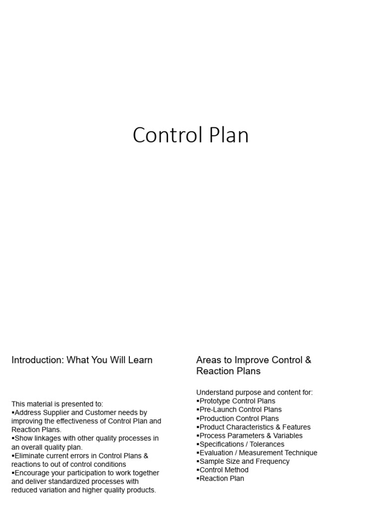 Control Plan Form 1. Prototype, Pre-Launch, Production