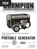 generator on a flat surface and remove the spark plug cap to prevent