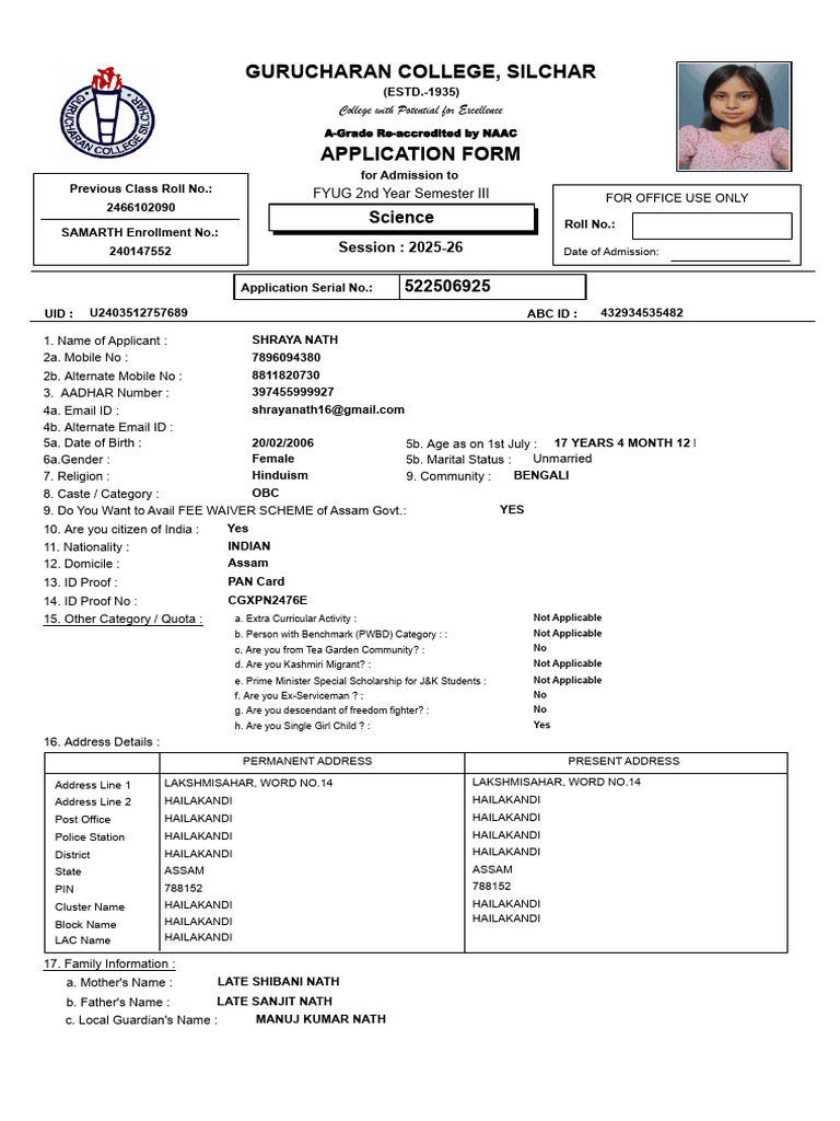 9. Do You Want to Avail FEE WAIVER SCHEME of Assam Govt.: YES