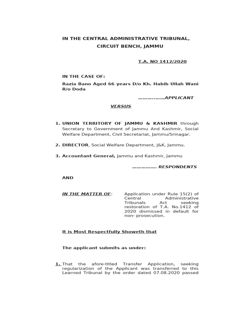 1 Application for restoration of T.A.