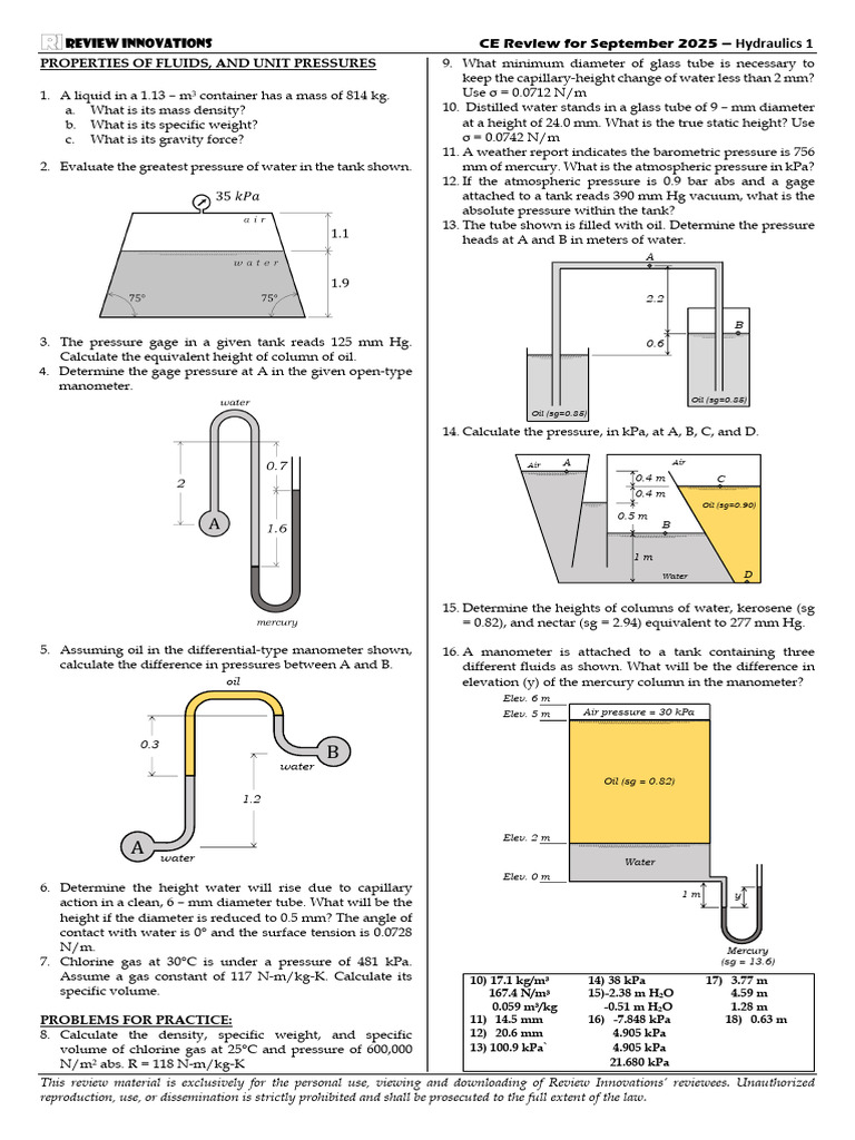 Review Innovations CE Review for September 2025 – Hydraulics 1