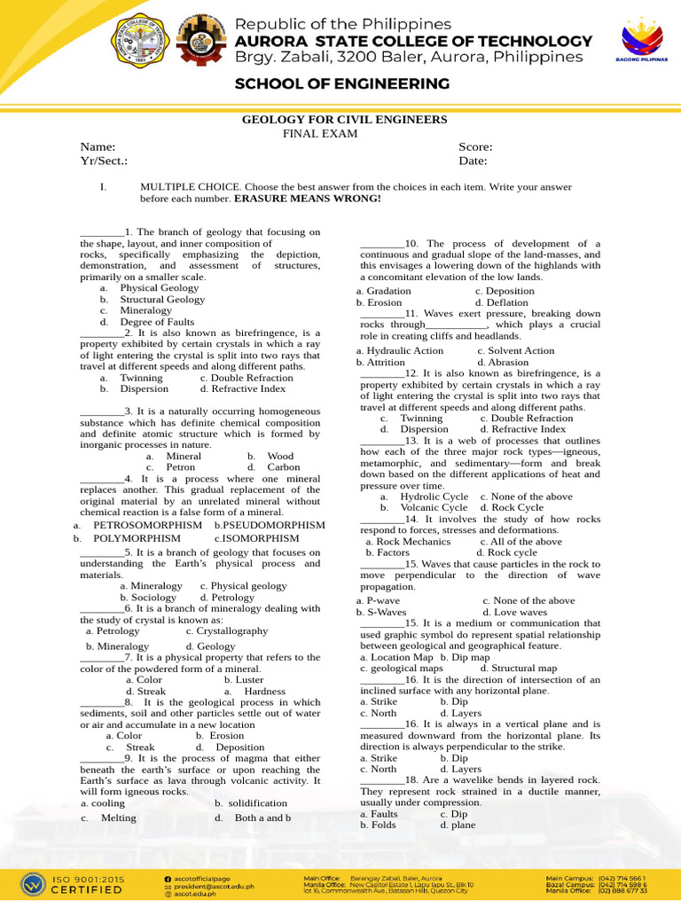 ________1. The branch of geology that focusing on