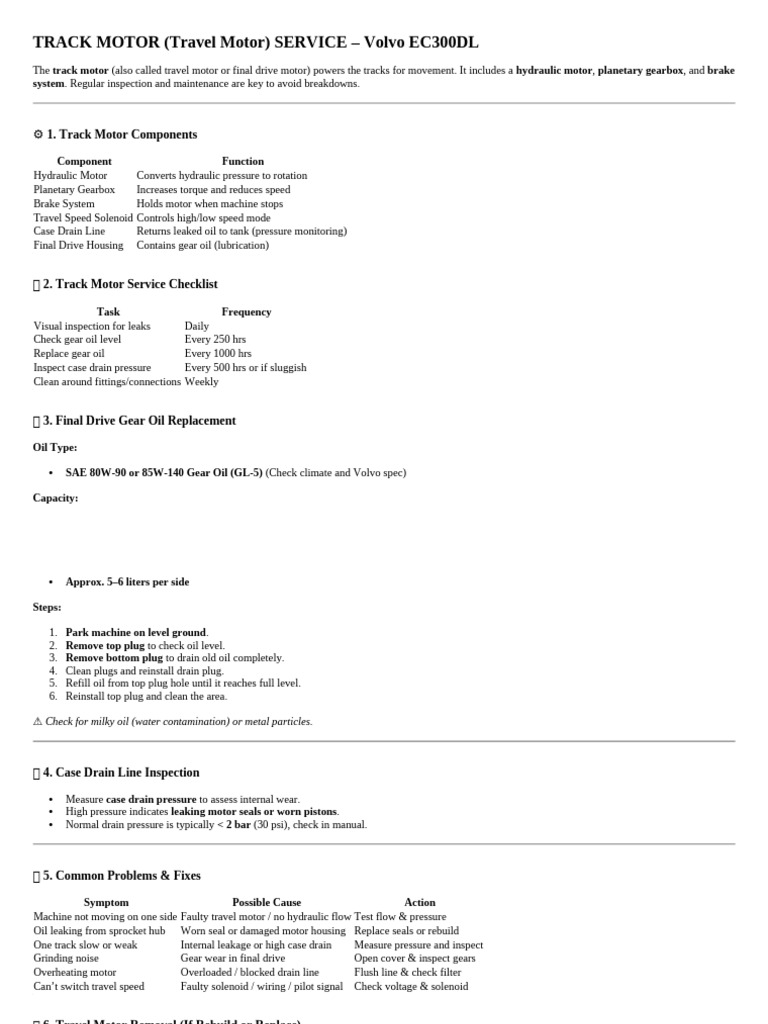 TRACK MOTOR (Travel Motor) SERVICE – Volvo EC300DL