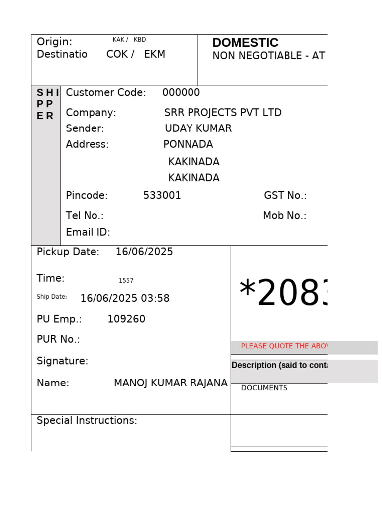 otiable waybill (also available on www.bluedart.com) and warrant that information contained on this waybill is true and correct.This shipment does not co