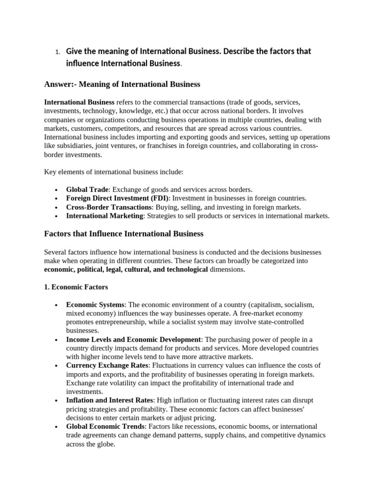 investments, technology, knowledge, etc.) that occur across national borders. It involves