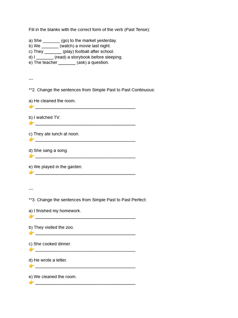Fill in the blanks with the correct form of the verb (Past Tense):