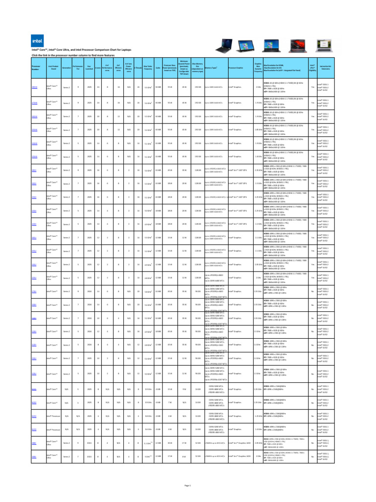 Processor Intel Product Performance Year Power Max Turbo (previously Size Max Instruction Set