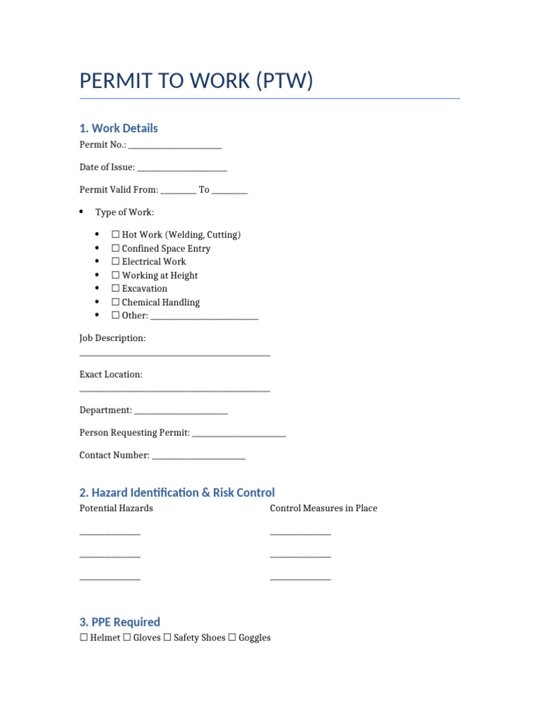☐ Helmet ☐ Gloves ☐ Safety Shoes ☐ Goggles