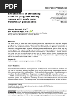 groups for homogeneity, the subjects exercised three times a week for 4 weeks. The test group performed muscle stretching