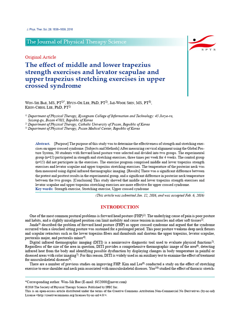 Key words: Strength exercise, Stretching exercise, Upper crossed syndrome