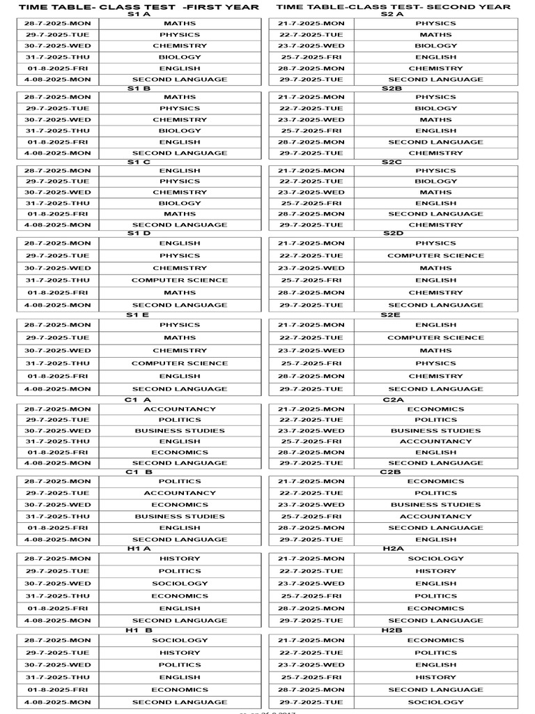 TIME TABLE- CLASS TEST -FIRST YEAR TIME TABLE-CLASS TEST- SECOND YEAR