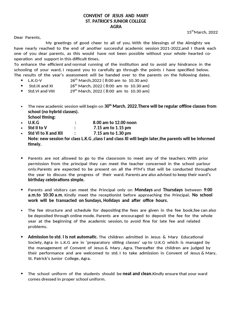 schooling of your ward, I request you to carefully go through the points I have specified below.