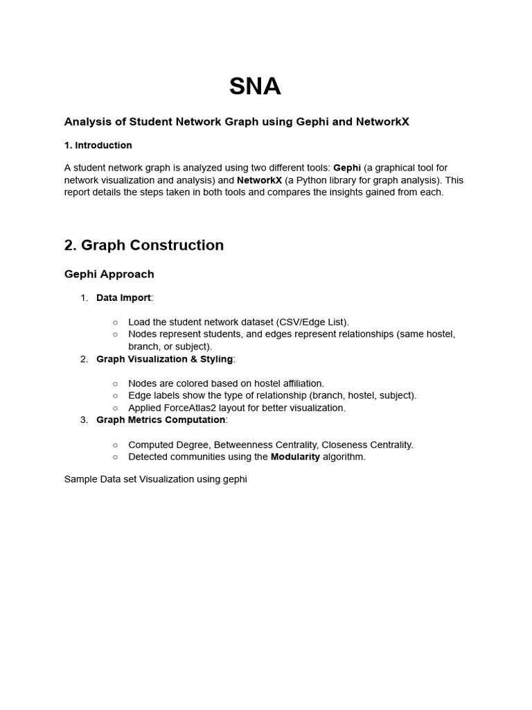 A student network graph is analyzed using two different tools: Gephi (a graphical tool for