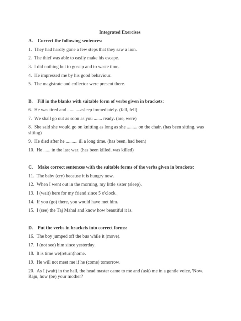 B. Fill in the blanks with suitable form of verbs given in brackets: