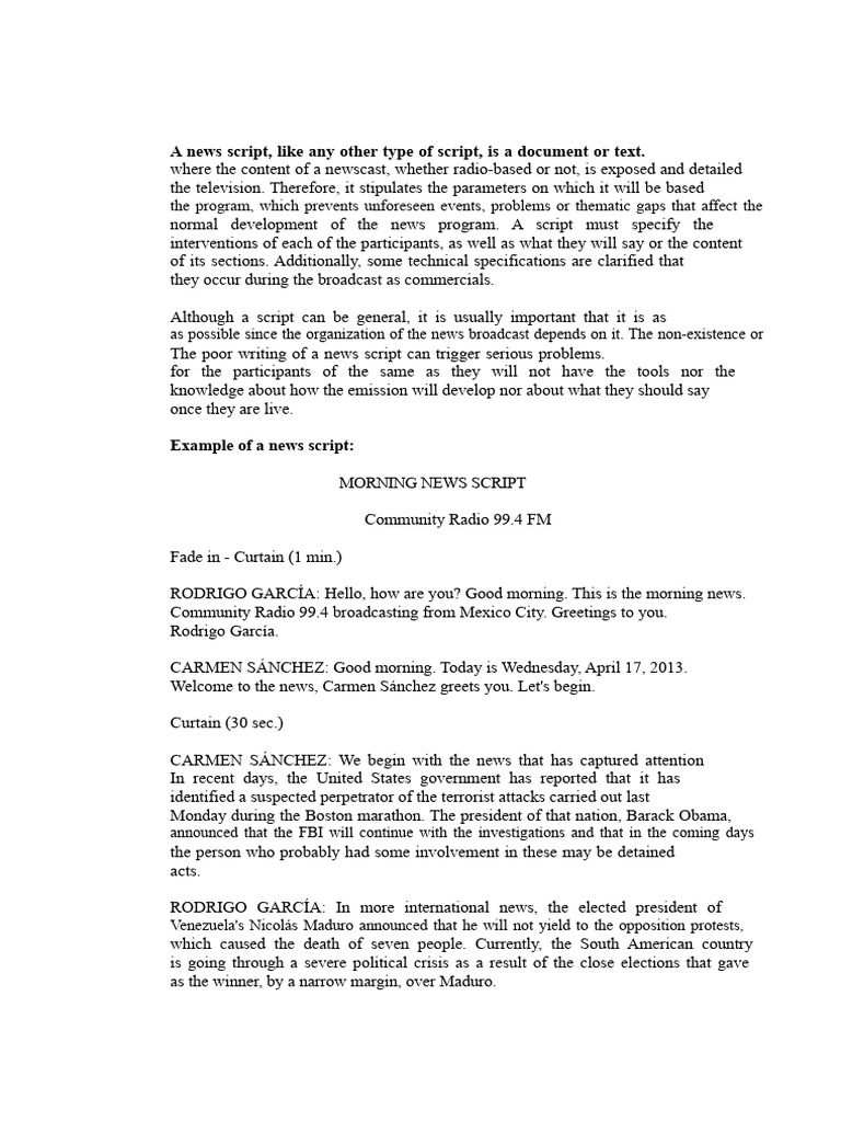 where the content of a newscast, whether radio-based or not, is exposed and detailed