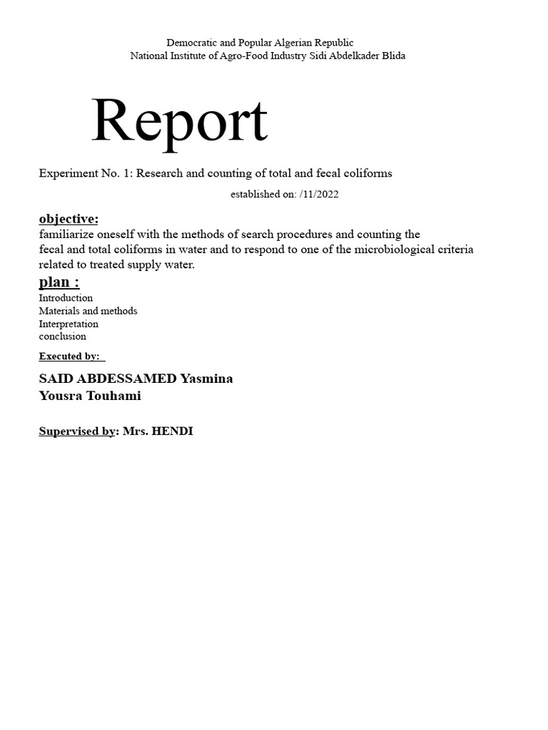 Experiment No. 1: Research and counting of total and fecal coliforms