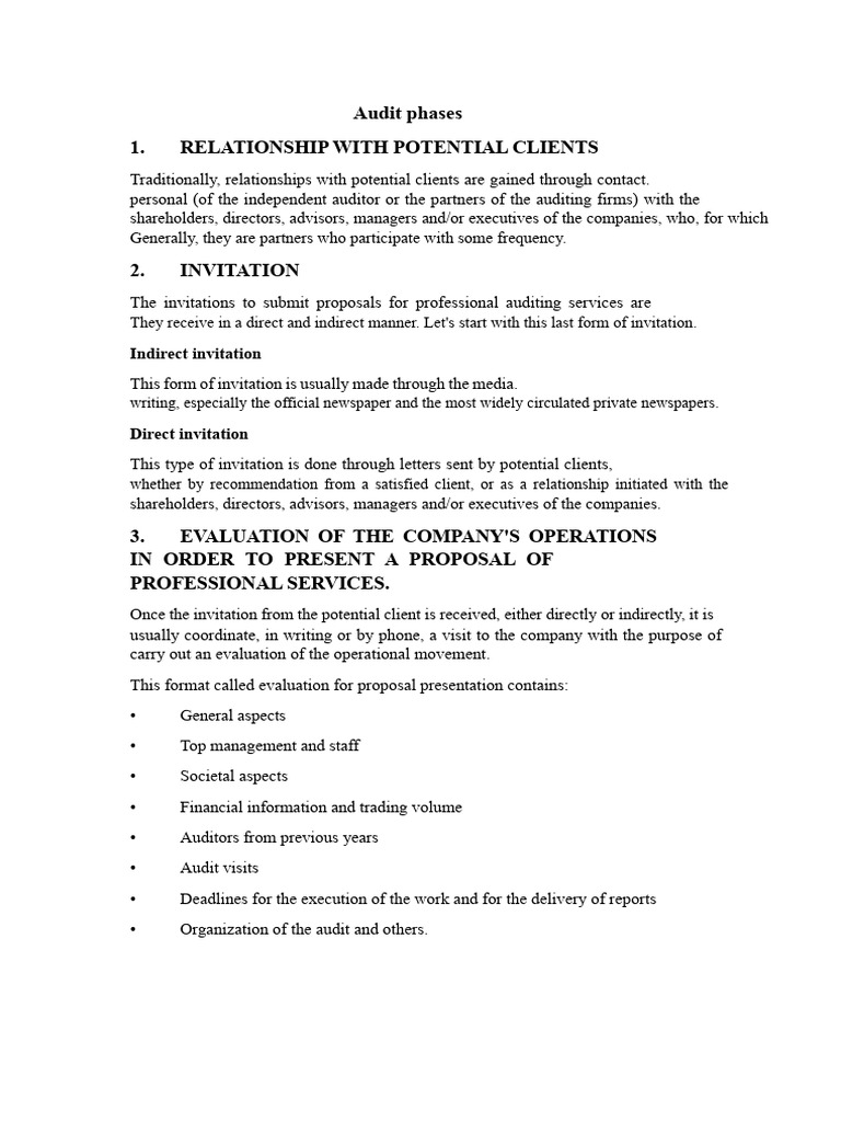 acceptance of the auditor to the appointment that has been made, as well as the scope of the work