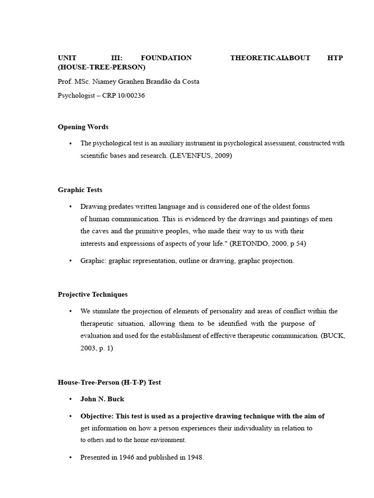 BUCK, John N.H-T-P: tree-house-person, projective drawing technique: manual and guide of