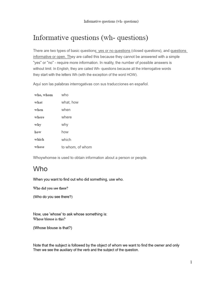 Informative questions (wh- questions)