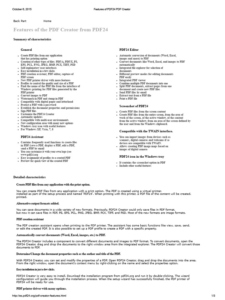 http://es.pdf24.org/pdf-creator-features.html 1/3