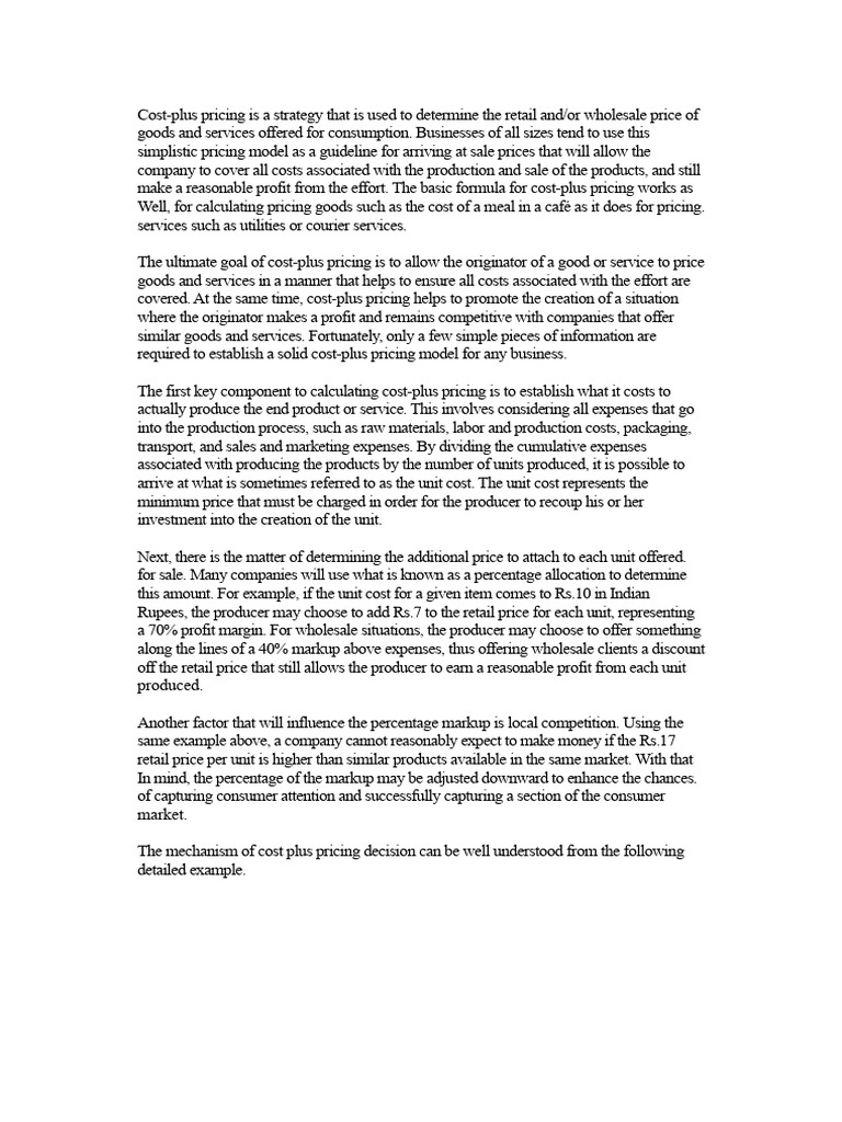 covered. At the same time, cost-plus pricing helps to promote the creation of a situation