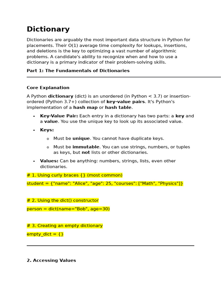 ordered (Python 3.7+) collection of key-value pairs. It's Python's
