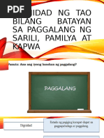 Nilalaman Dignidad ng Tao Bilang Batayan ng Paggalang sa Sarili, Pamilya, at Kapuwa