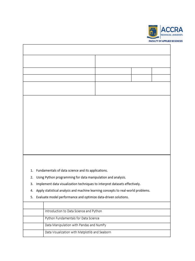 Course Title INTRODUCTION TO DATA SCIENCE WITH
