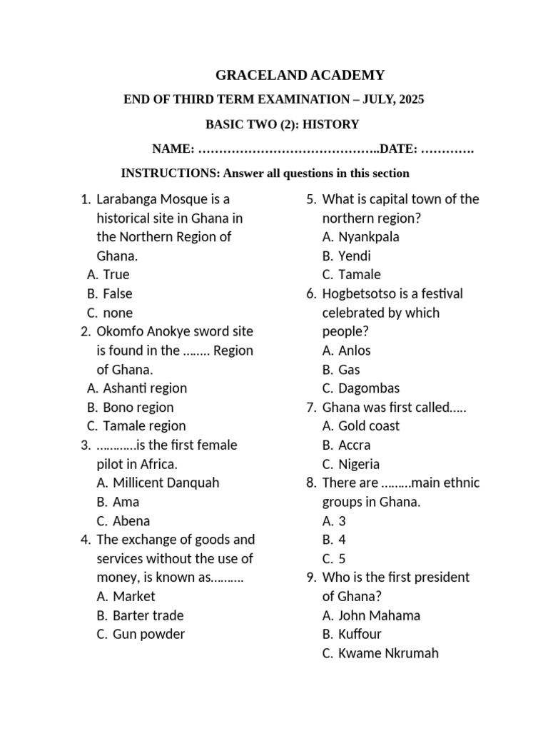 END OF THIRD TERM EXAMINATION – JULY, 2025
