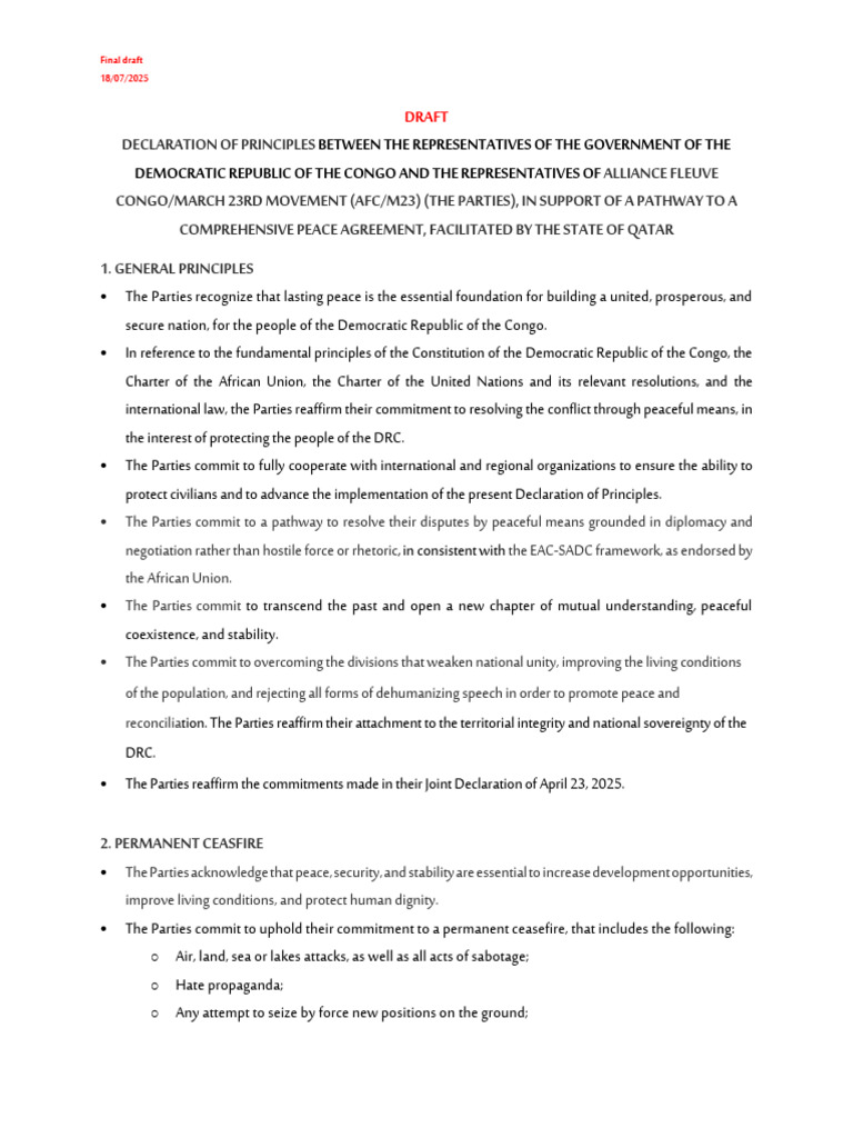 Democratic Republic of the Congo and the Republic of Rwanda signed in Washington on 27 June 2025.