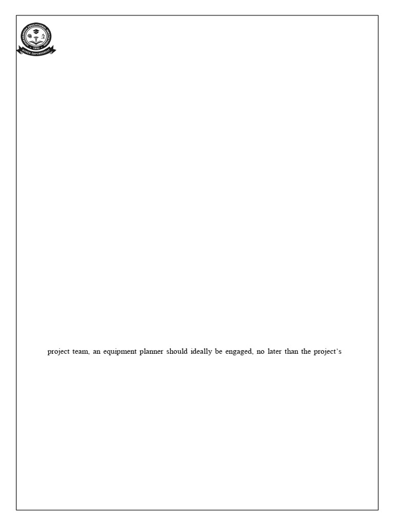 project team, an equipment planner should ideally be engaged, no later than the project’s design
