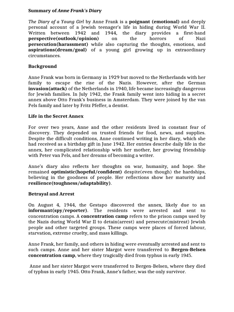 Summary of Anne Frank's Diary