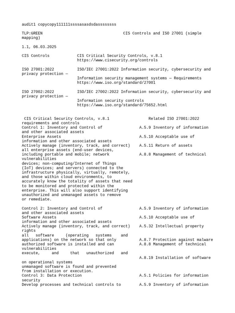 TLP:GREEN CIS Controls and ISO 27001 (simple