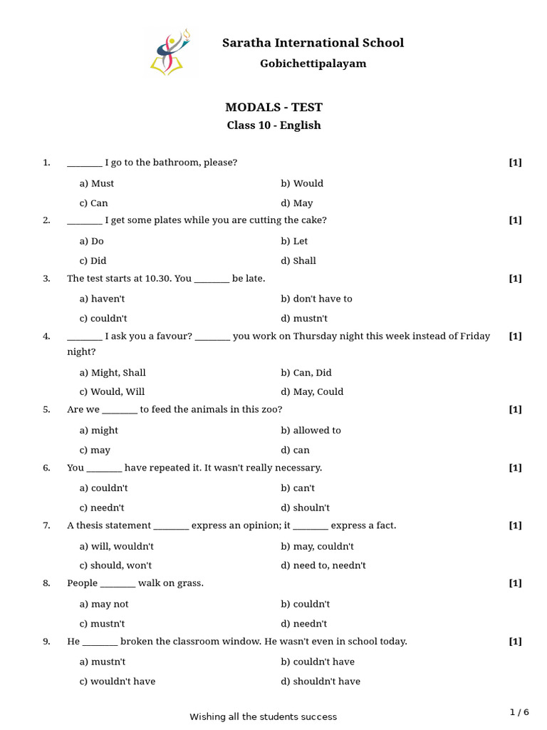 6. You ________ have repeated it. It wasn't really necessary. [1]