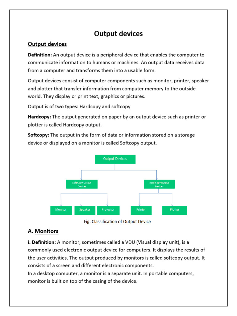 i. Definition: A monitor, sometimes called a VDU (Visual display unit), is a