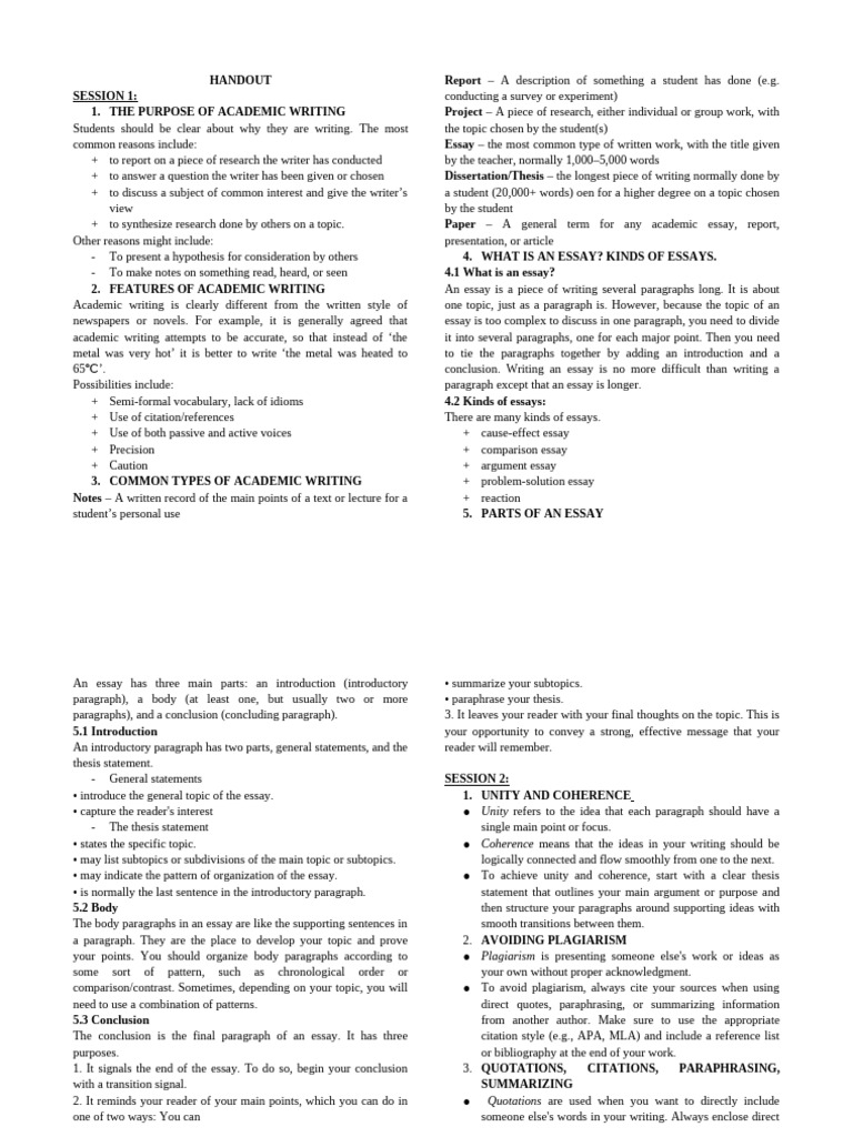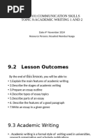 2. FEATURES OF ACADEMIC WRITING An essay is a piece of writing several paragraphs long. It is about