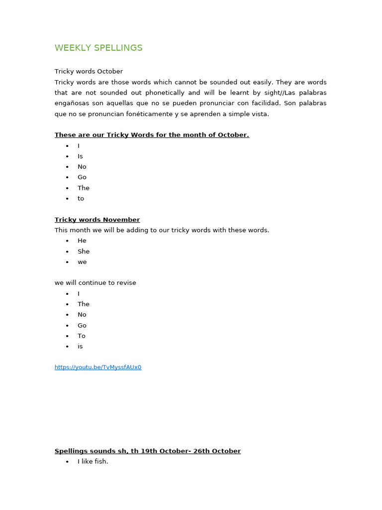 that are not sounded out phonetically and will be learnt by sight//Las palabras