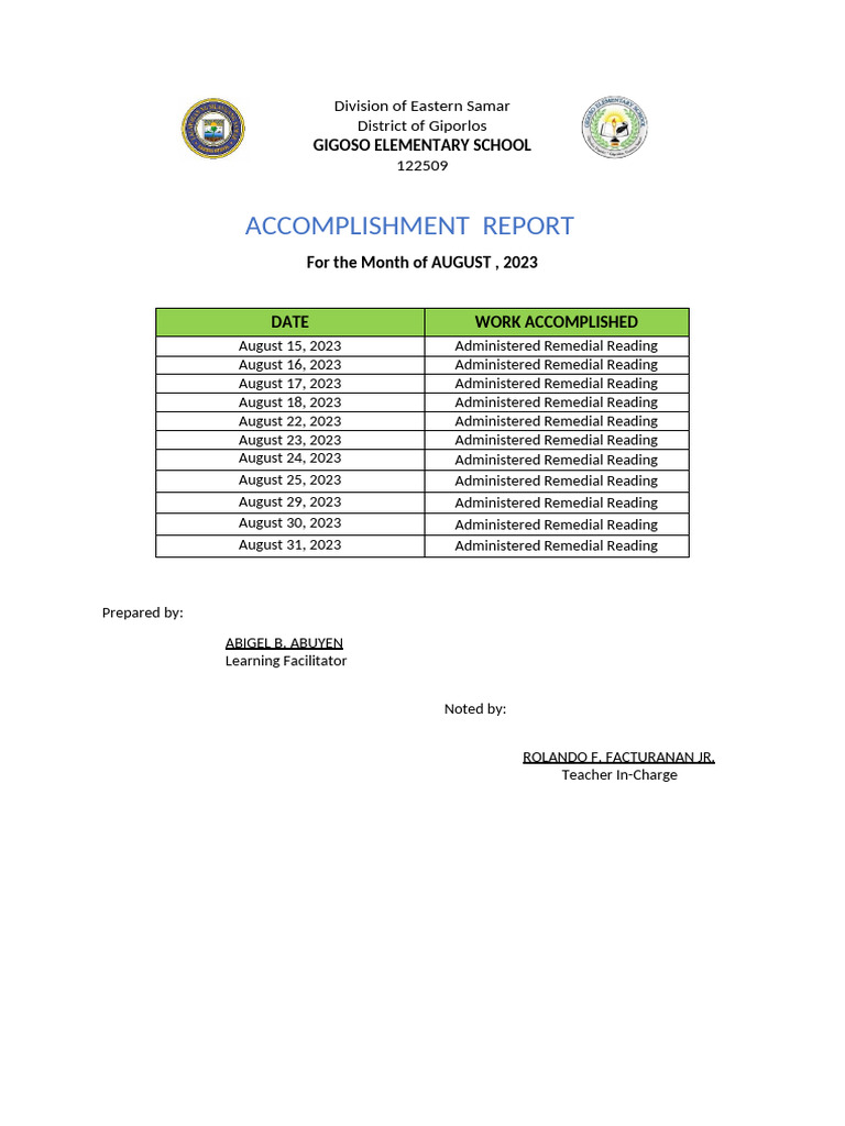 ACCOMPLISHMENT REPORT