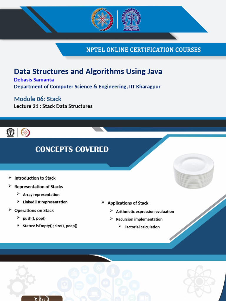 Data structure: Array representation of a stack with TOP as the pointer to the top-most element.
