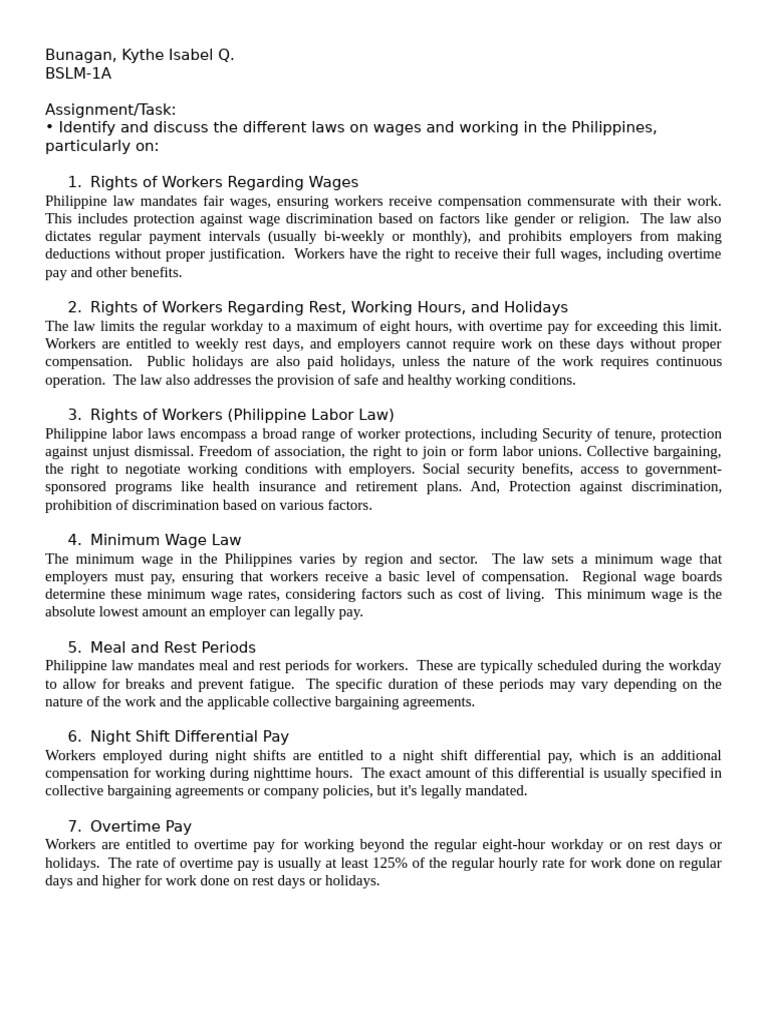 • Identify and discuss the different laws on wages and working in the Philippines,