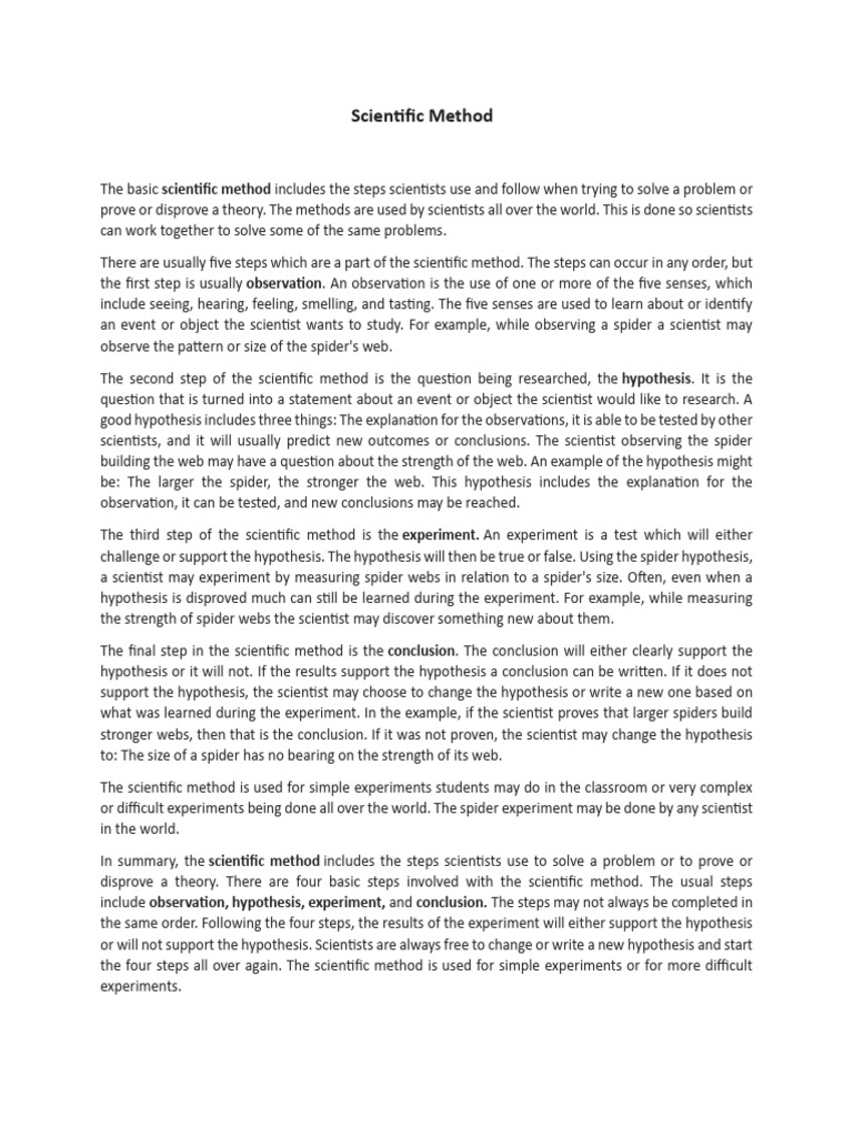 the four steps all over again. The scientific method is used for simple experiments or for more difficult