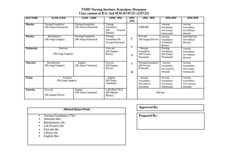 Class routine of B.Sc 2nd SEM (07/07/25-12/07/25)