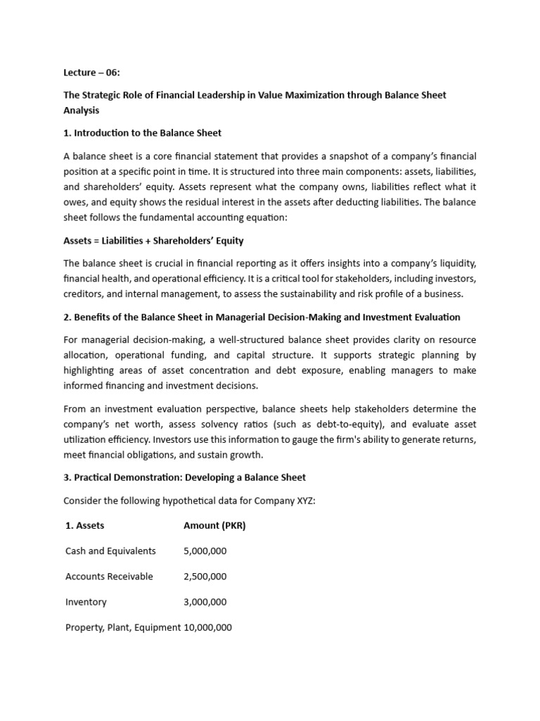 The Strategic Role of Financial Leadership in Value Maximization through Balance Sheet