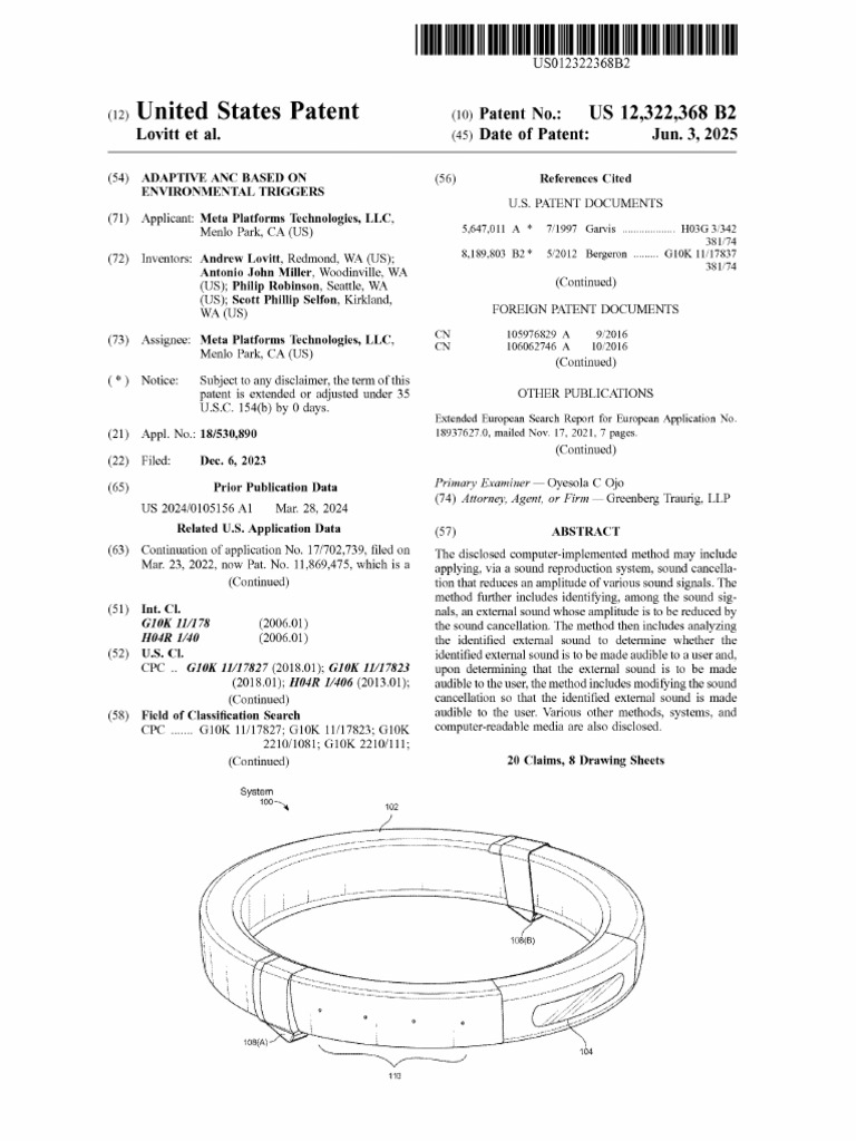 noise cancellation based on environmental Wiggers mayUS 12,322,368 B2