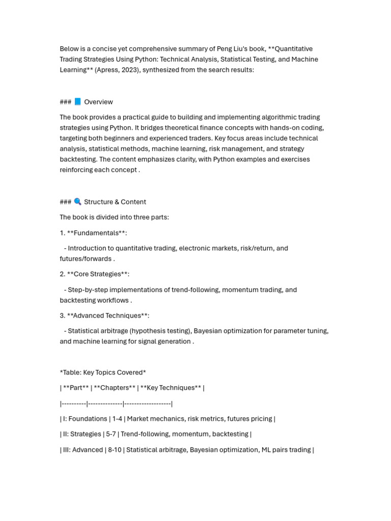 Below is a concise yet comprehensive summary of Peng Liu's book, **Quantitative