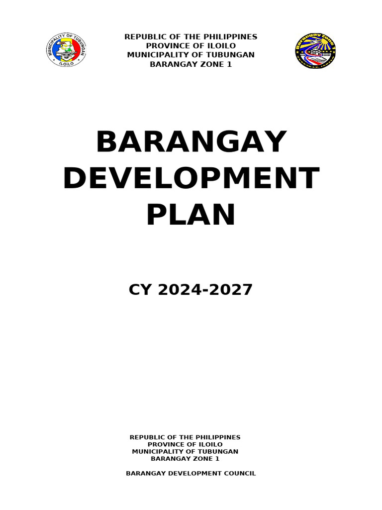 DEVELOPMENT PLAN (2024 – 2027) FOR BARANGAY ZONE 1, TUBUNGAN, ILOILO