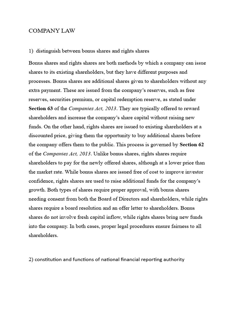 of the Companies Act, 2013. Unlike bonus shares, rights shares require